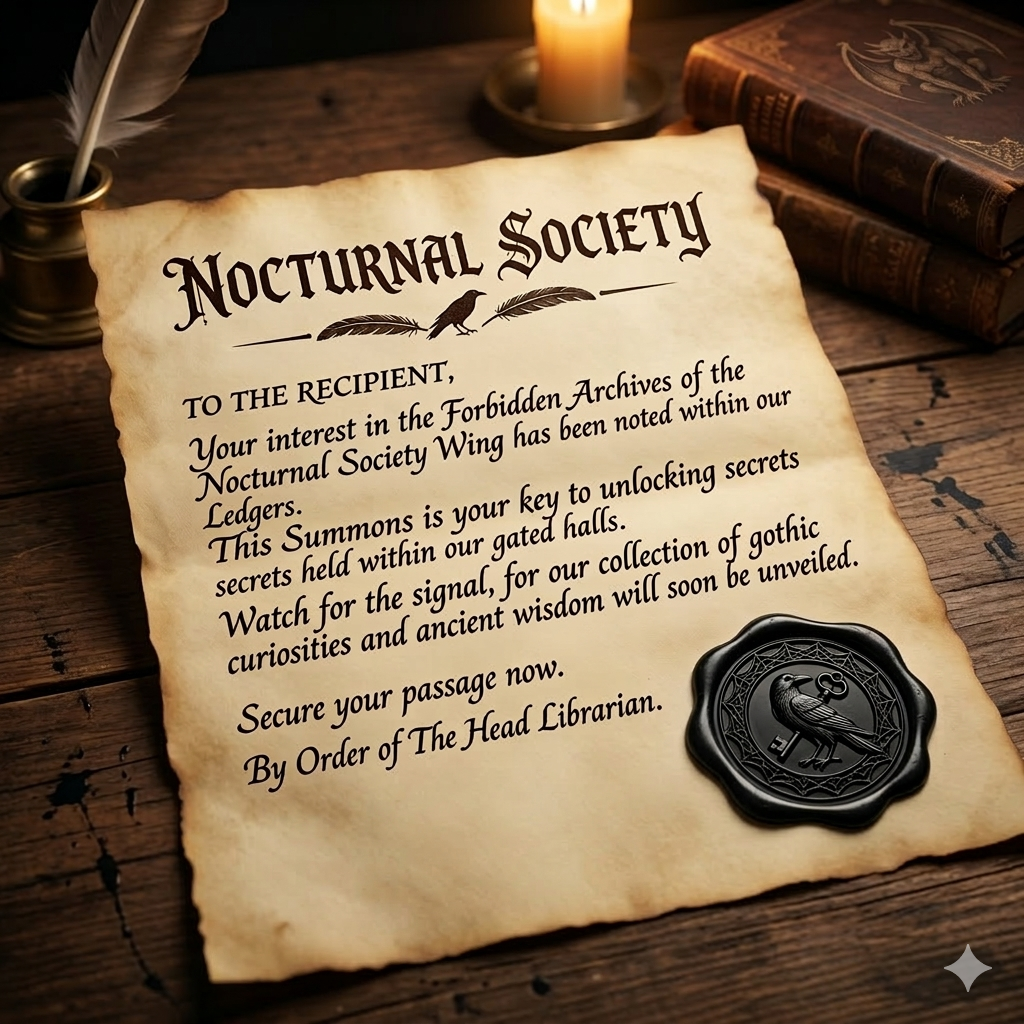 The Nocturnal Society is not for every reader—only those who seek the haunted, the iron-bound, and the ancient. By submitting your petition today, you secure your place in the first wave of inductions.